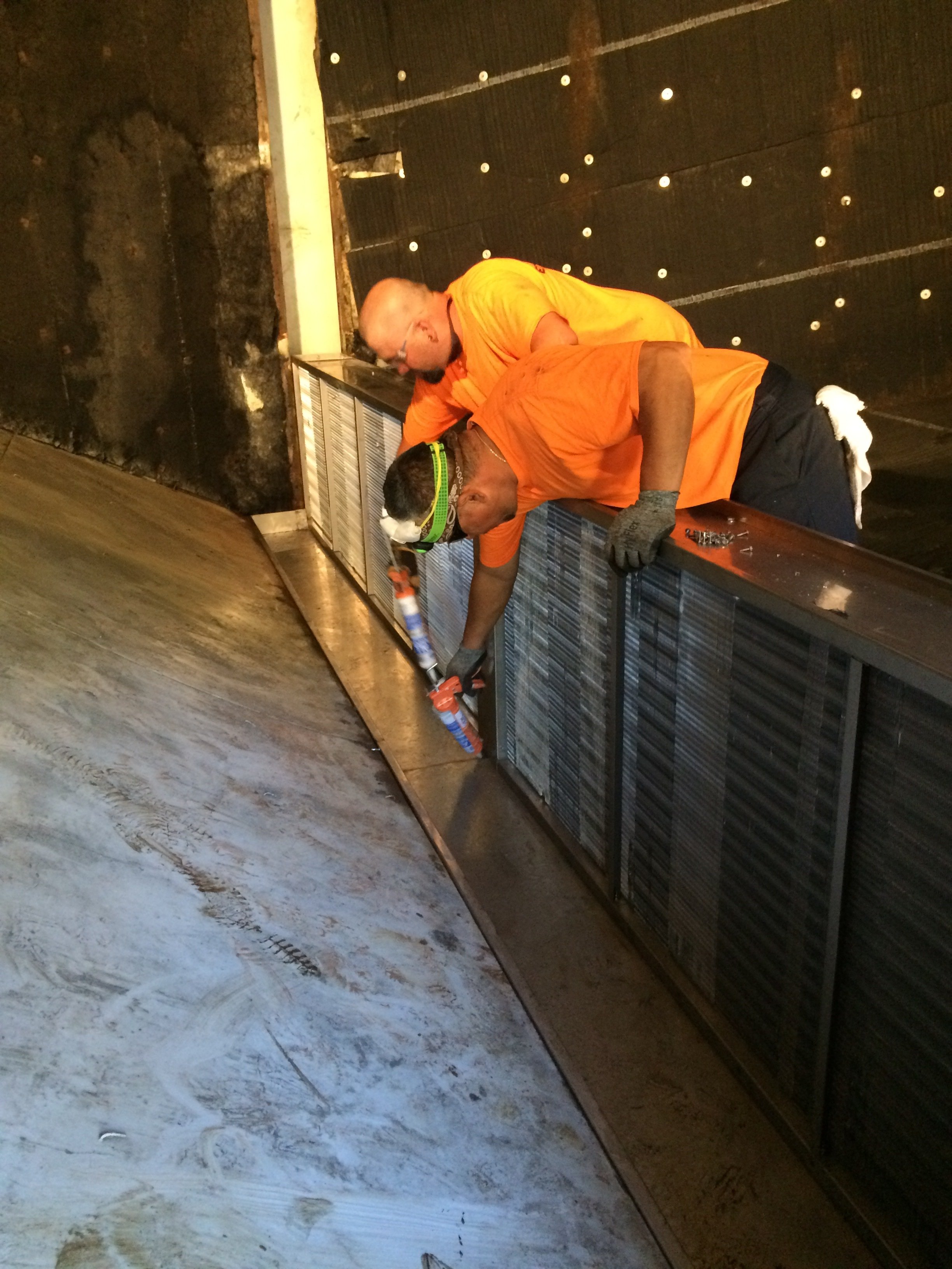 Athena Engineering was awarded this coil replacement project in the fully occupied and operational ISD headquarters over two action-packed weekends, running double-shifts. The scope included the removal and replacement of 6 total hot and chilled water coils inside the main air handler unit serving this building. Athena Engineering installed new piping to connect the new coils, new main chilled and hot water valves, and also provided and installed new condensate pans. Since the building had to be operational during the week, this scope was safely performed over the course of 3 weekends, and the unit re-started at the end of the weekend so the HVAC was operational prior to staff arriving each Monday morning. The entire HVAC dry-side scope was self-performed by Athena Engineering and in-house staff.
